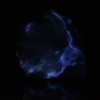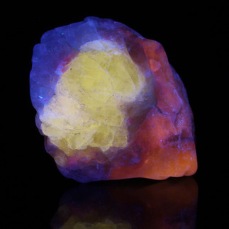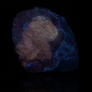 Shown below: longwave, midwave (310 nm LED), shortwave (255 nm LED), Phosphorescence, SW tenebrescence and natural color.