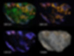 The photo montage above illustrates the wavelength-dependent, variable color fluorescent response of this specimen.