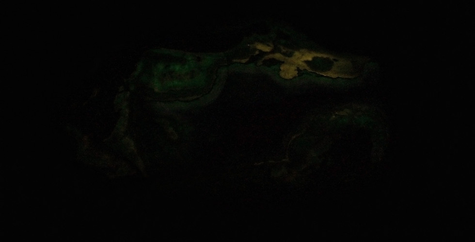 Shown in the slideshow below: Shortwave UV (254 nm tube lamp), Midwave UV (310 nm LED), Longwave UV, SW phosphorescence, MW phosphorescence, LW phosphorescence, Visible light.